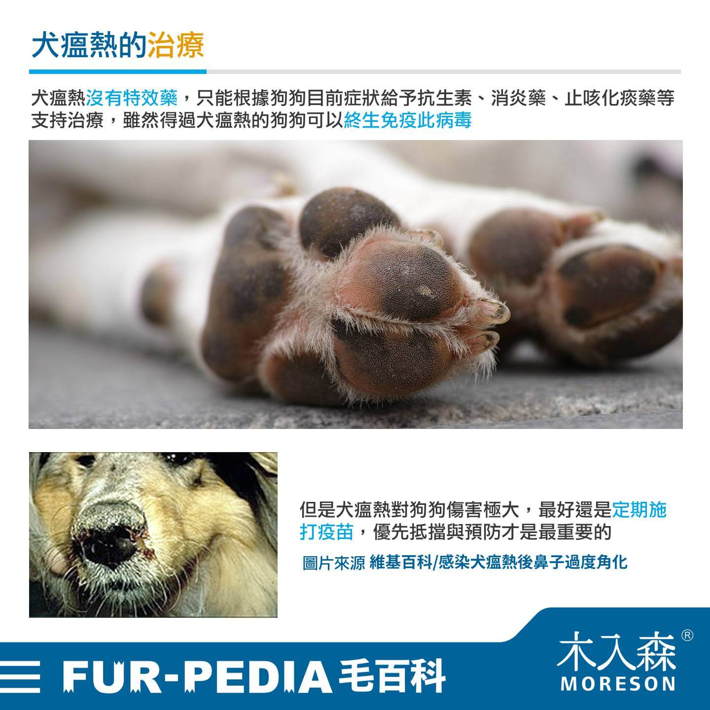 犬瘟熱沒有特效藥,只能根據狗狗目前症狀給予抗生素、消炎藥、止咳化痰藥等支持治療,雖然得過犬瘟熱的狗狗可以終生免疫此病毒,但是犬瘟熱對狗狗傷害極大,最好還是定期施打疫苗,優先抵擋與預防才是最重要的。