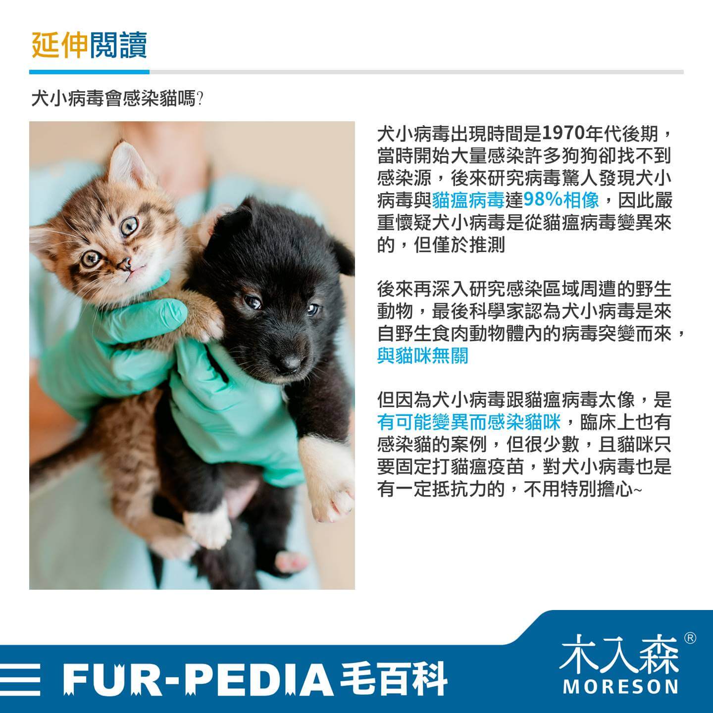 後來再深入研究感染區域周遭的野生動物,最後科學家認為犬小病毒是來自野生食肉動物體內的病毒突變而來,與貓咪無關。但因為犬小病毒跟貓瘟病毒太像,是有可能變異而感染貓咪,臨床上也有感染貓的案例,但貓咪只要固定打貓瘟疫苗,對犬小病毒也是有一定抵抗力的,不用特別擔心~