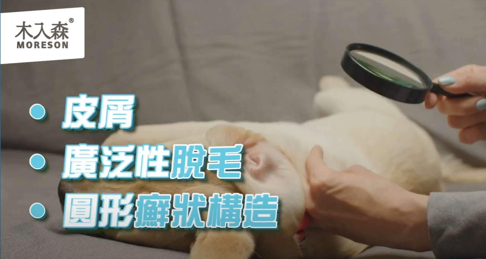 黴菌感染會看到像頭皮屑的碎屑出現在皮膚上、廣泛性脫毛或是圓圓的「癬」狀構造。