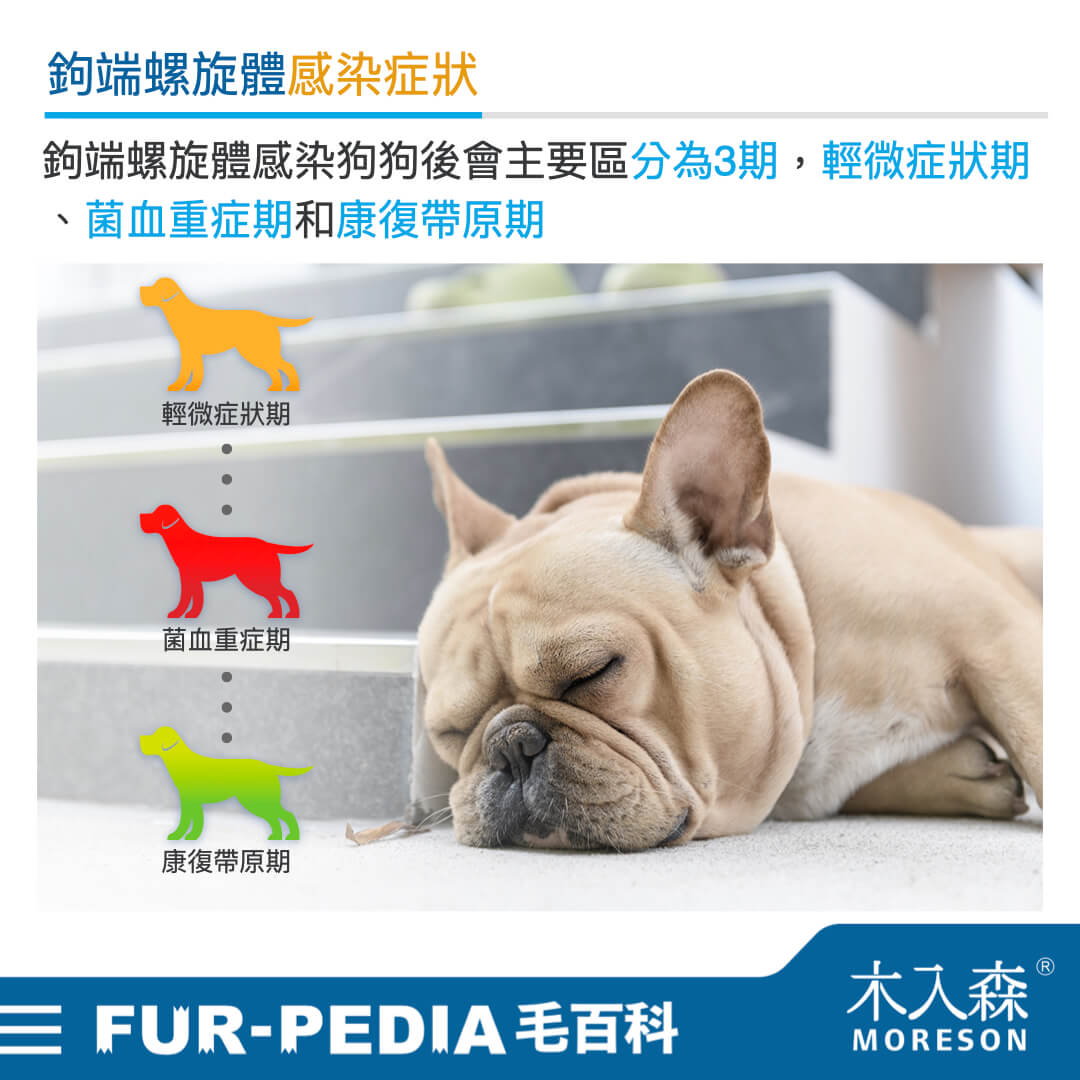 鉤端螺旋體感染狗狗後會主要區分為3期,輕微症狀期、菌血重症期和康復帶原期