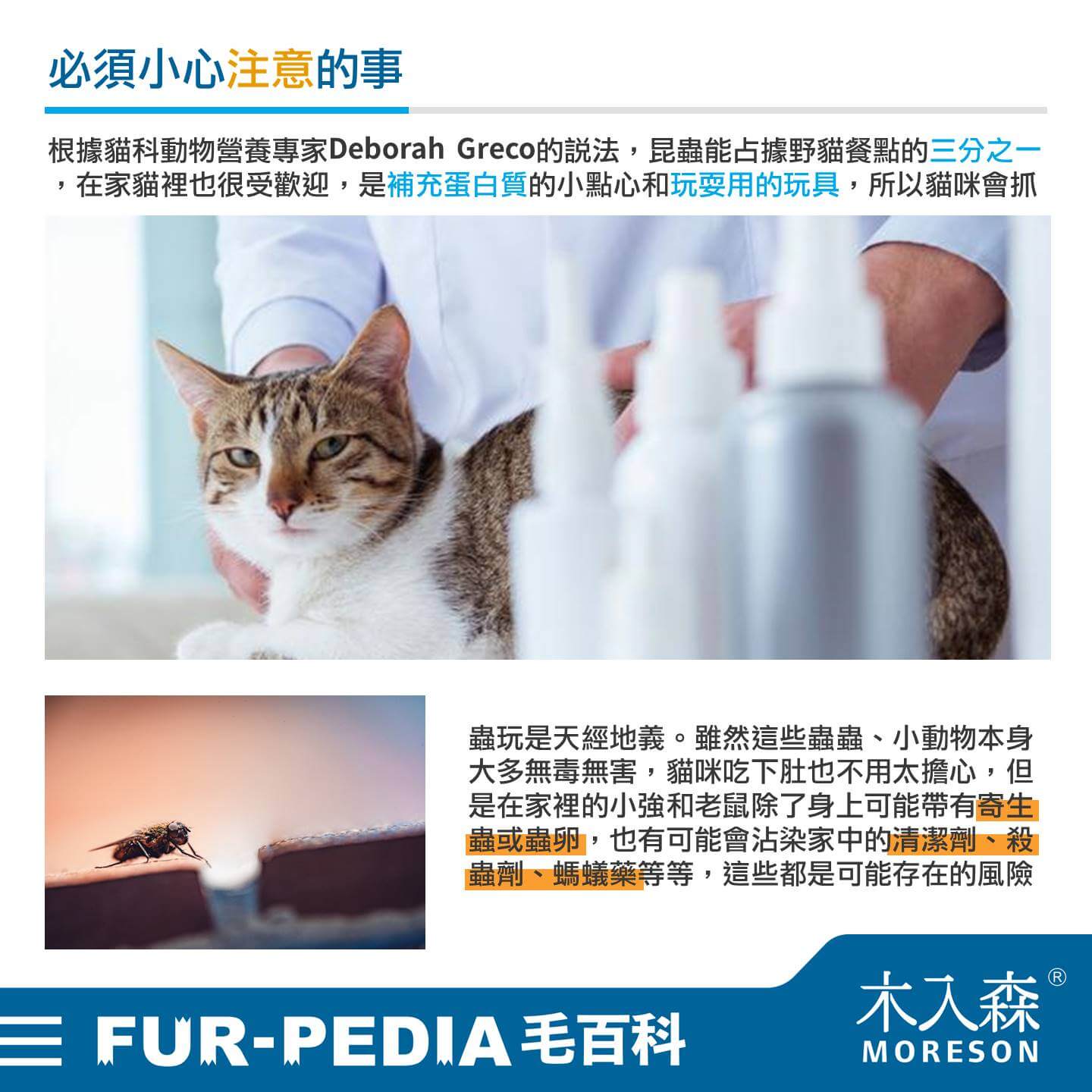 因此幫貓咪固定驅蟲還是需要的,尤其是有這種叼禮物習慣的貓咪。另外家裡盡量使用較無毒害天然的清潔劑,殺蟲劑等有毒性的昆蟲用藥也不要使用,並維持環境清潔最重要。雖然這種情況而讓貓咪吃下肚的劑量算很低,專家表示不需過度驚慌,但還是建議多注意貓咪一至二天的狀態,若是有出現拉肚子或是嘔吐的現象,或是有任何異常,就需要盡速就醫。