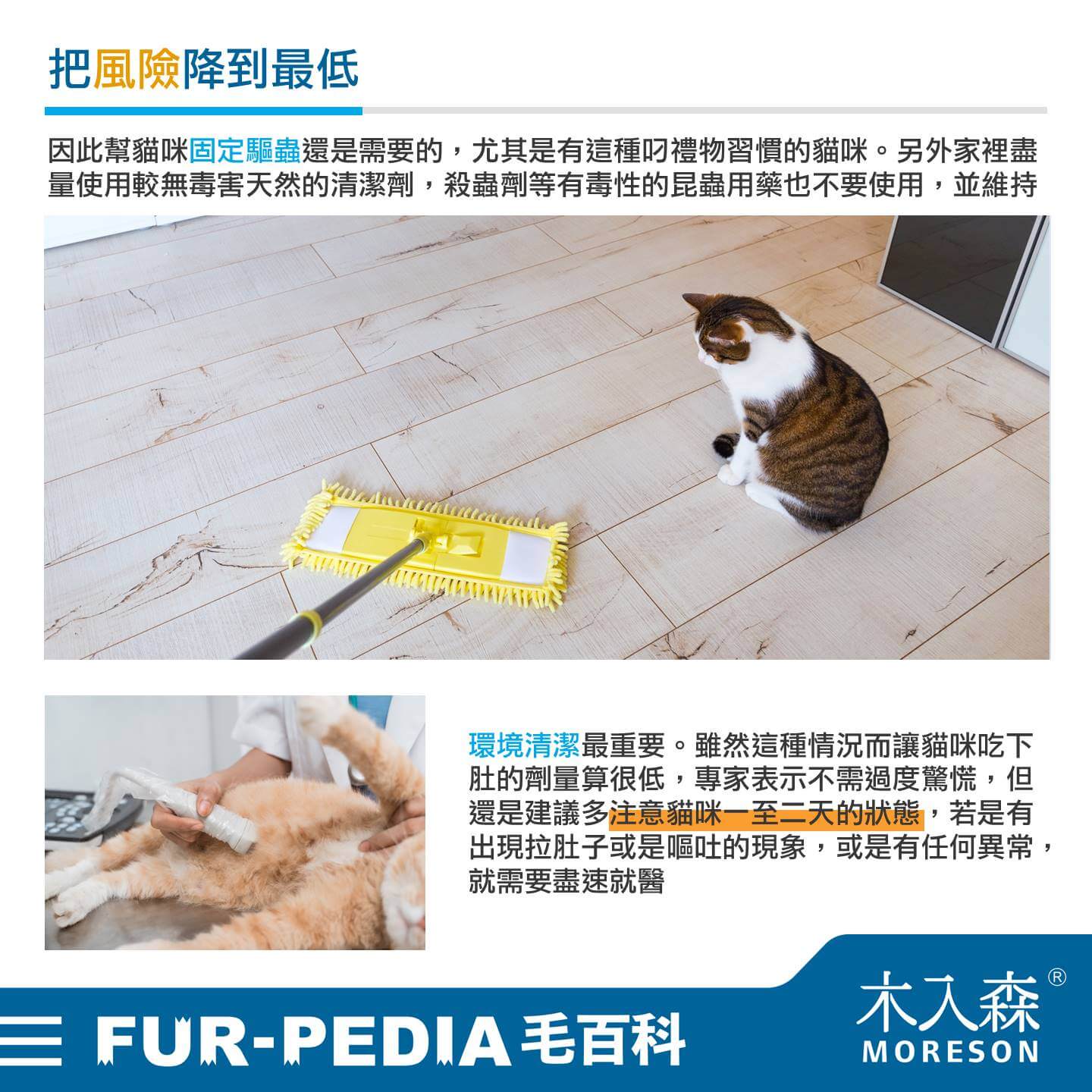 因此幫貓咪固定驅蟲還是需要的,尤其是有這種叼禮物習慣的貓咪。另外家裡盡量使用較無毒害天然的清潔劑,殺蟲劑等有毒性的昆蟲用藥也不要使用,並維持環境清潔最重要。雖然這種情況而讓貓咪吃下肚的劑量算很低,專家表示不需過度驚慌,但還是建議多注意貓咪一至二天的狀態,若是有出現拉肚子或是嘔吐的現象,或是有任何異常,就需要盡速就醫。