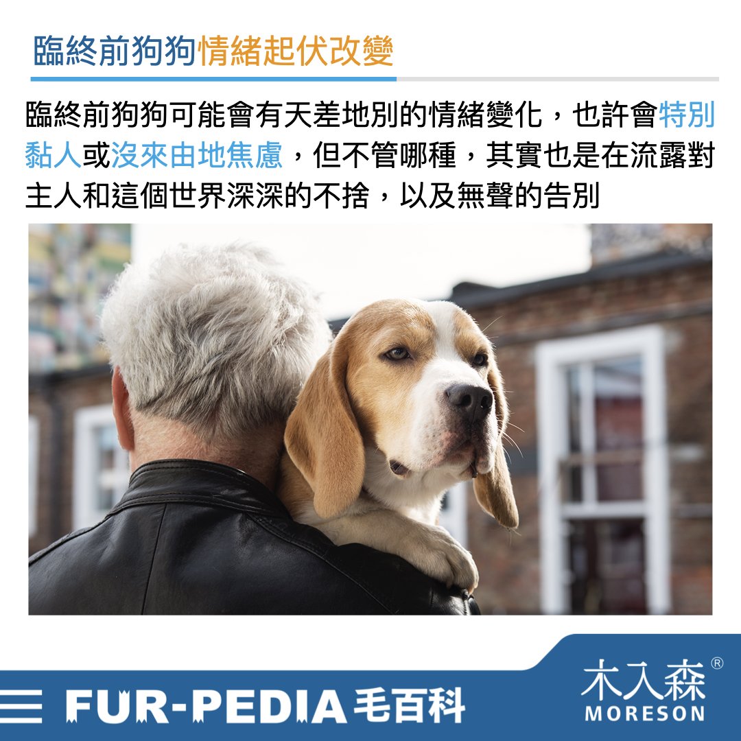 狗狗雖然不像人類對死亡可能會感到恐懼,但仍然會因為「身體上的不適」、難受而「坐立不安」,或因為「視力、嗅覺或聽力下降」而感到「無助徬徨」。