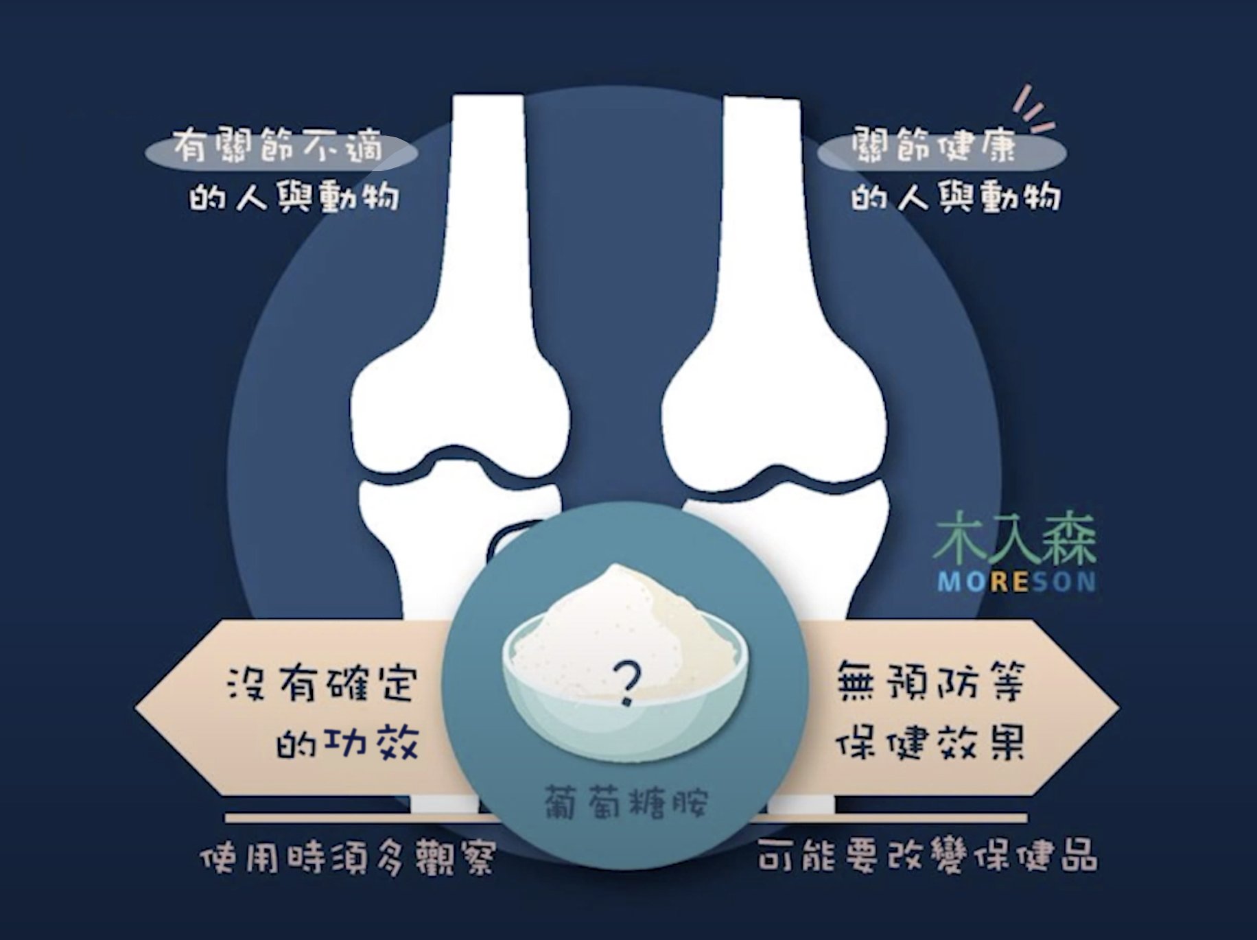 是在有關節卡卡的時候,服用葡萄糖胺時注意「成分」與「劑量」,並且觀察後續狀態改變。