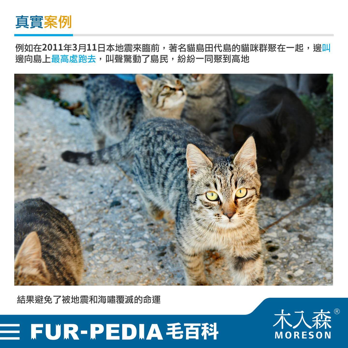 貓耳能感受到的最高振動頻率(60000Hz)比人耳的(20000Hz)還要靈敏,狗狗也是,可能導致貓狗對於地震前的微小震動十分敏感