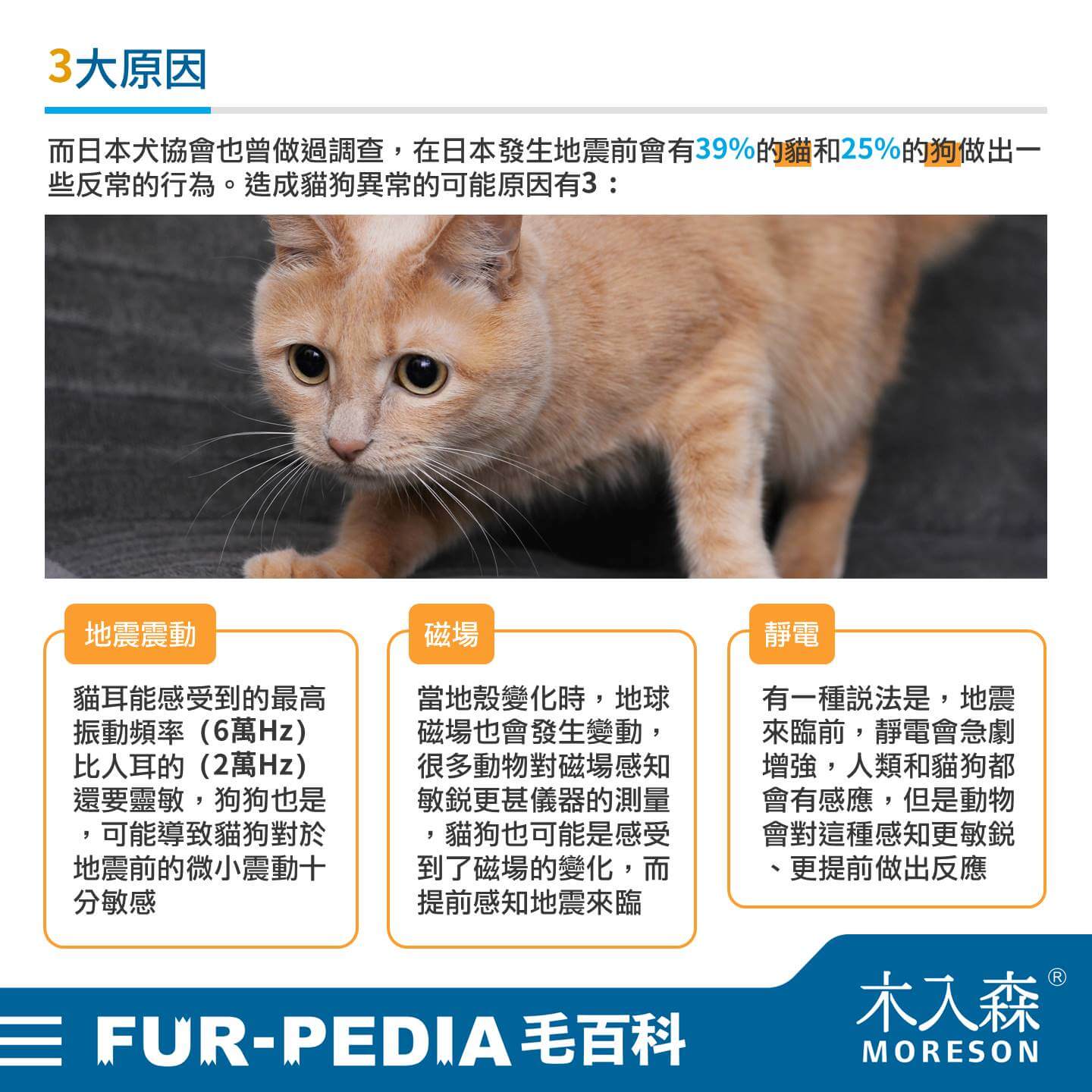 而日本犬協會也曾做過調查,在日本發生地震前會有39%的貓和25%的狗做出一些反常的行為。造成貓狗異常的可能原因有3: