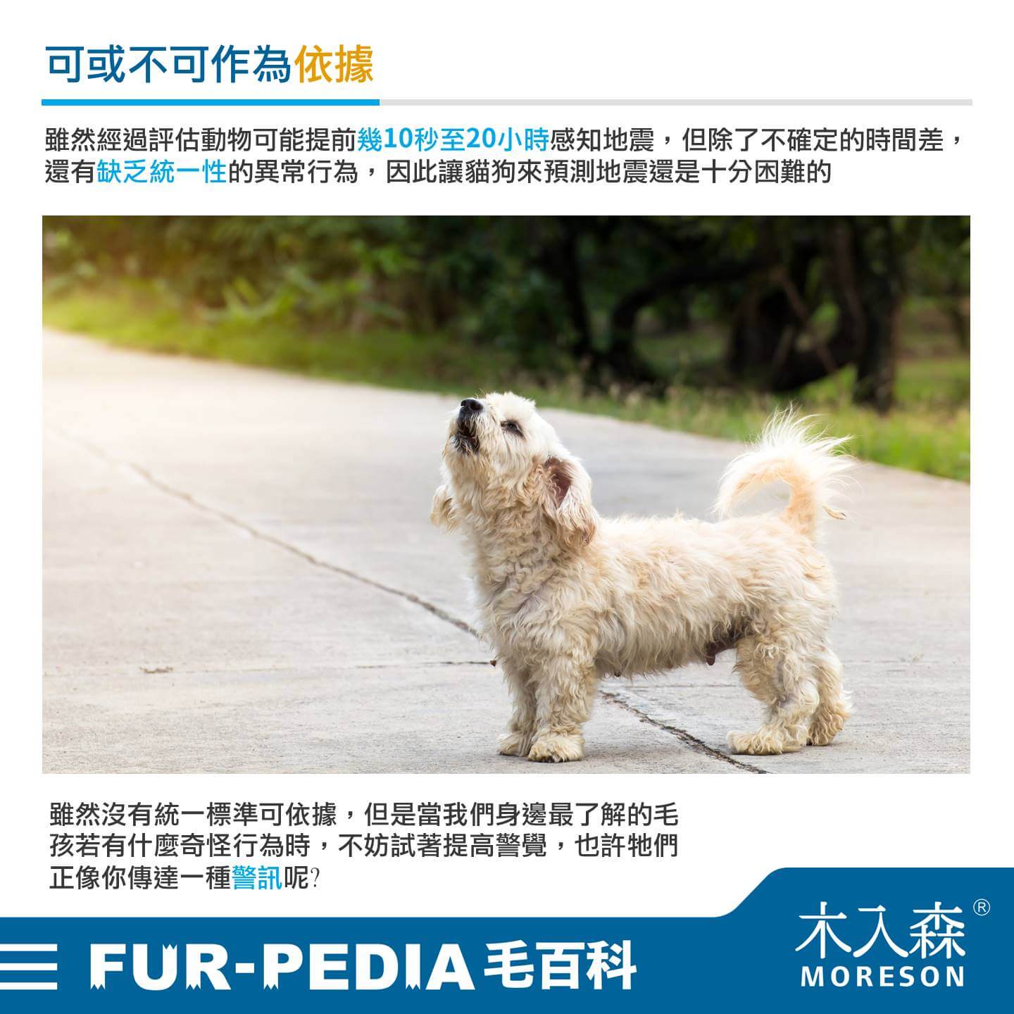 雖然經過評估動物可能提前幾10秒至20小時感知地震,但除了不確定的時間差,還有缺乏統一性的異常行為,因此讓貓狗來預測地震還是十分困難的,雖然沒有統一標準可依據,但是當我們身邊最了解的毛孩若有什麼奇怪行為時,不妨試著提高警覺,也許牠們正像你傳達一種警訊呢?