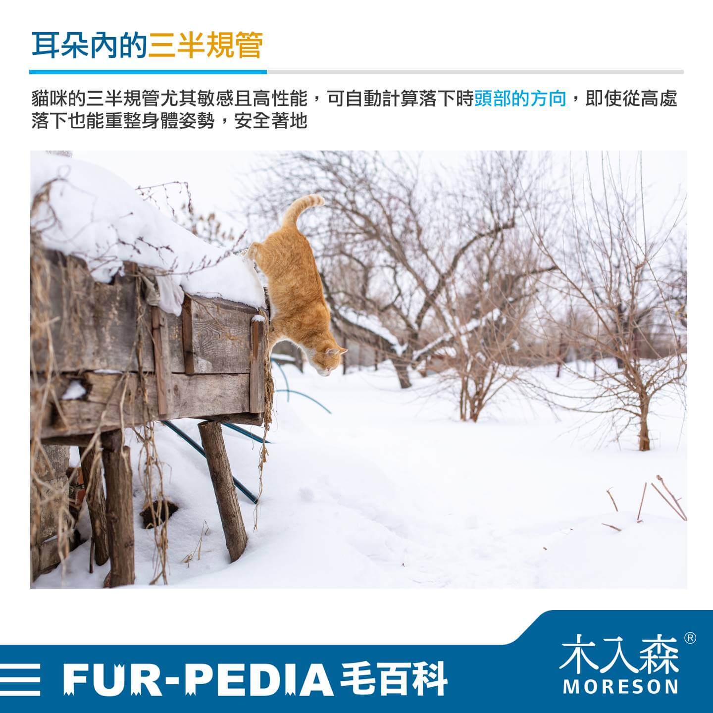 貓咪的三半規管尤其敏感且高性能,可自動計算落下時頭部的方向,即使從高處落下也能重整身體姿勢,安全著地。