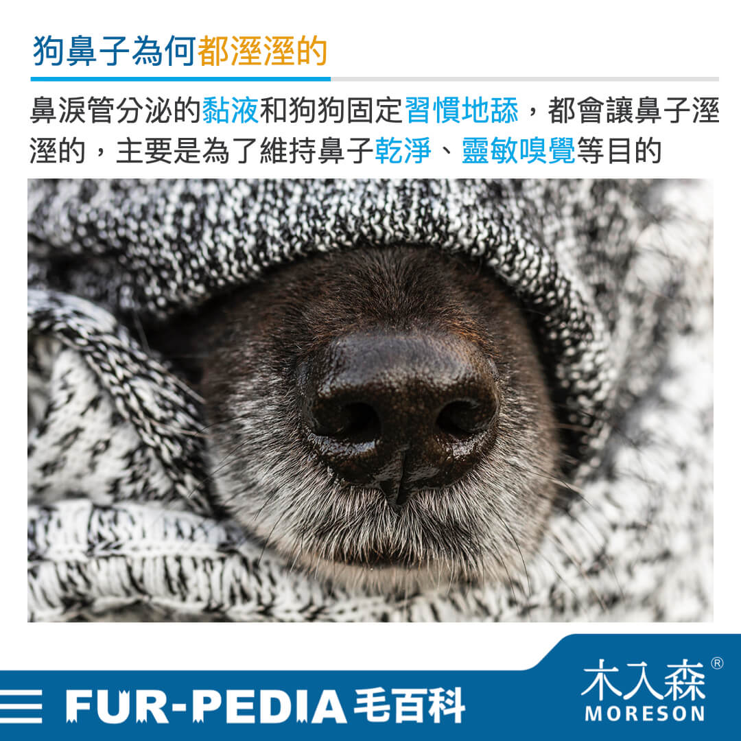 鼻子是狗狗很精巧重要的器官,平時連通鼻子與眼睛的鼻淚管會分泌黏液濕潤鼻子,讓更多氣味附著在鼻腔中,幫助狗狗增加嗅聞上的靈敏度;除此之外,狗狗也喜歡舔鼻子,可以幫助鼻子清潔,也可以將鼻子上吸附的味道,舔入口腔中利用嘴巴特殊的嗅覺腺體進一步分析氣味喲!