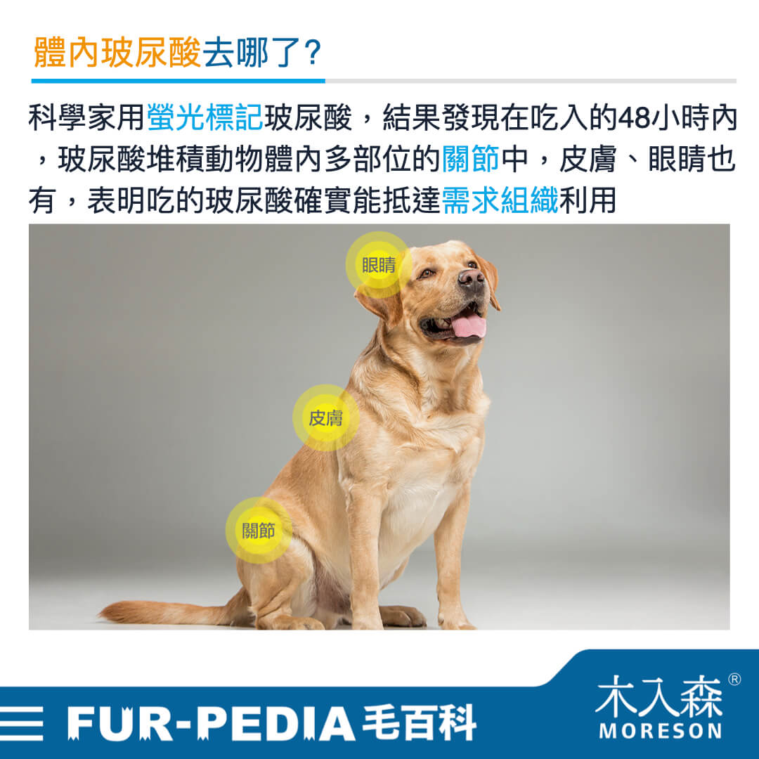 吃入體內的玻尿酸除了是否有被吸收,有效利用也很重要! 科學家把要吃入的玻尿酸用螢光標記,並用儀器偵測,吃入的玻尿酸到底去了人、狗狗或老鼠身體哪裡了,結果發現這些玻尿酸在吃入的48小時內,均堆積在了多部位的骨關節中,皮膚、眼睛和唾液也有,表明玻尿酸確實能抵達需求組織並吸收利用。