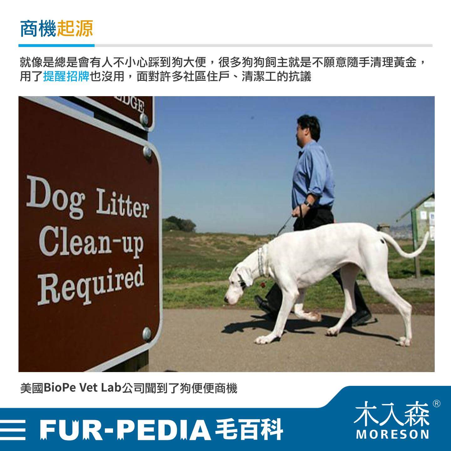 就像是總是會有人不小心踩到狗大便,很多狗狗飼主就是不願意隨手清理黃金,用了提醒招牌也沒用,面對許多社區住戶、清潔工的抗議,美國BioPe Vet Lab公司聞到了狗便便商機。