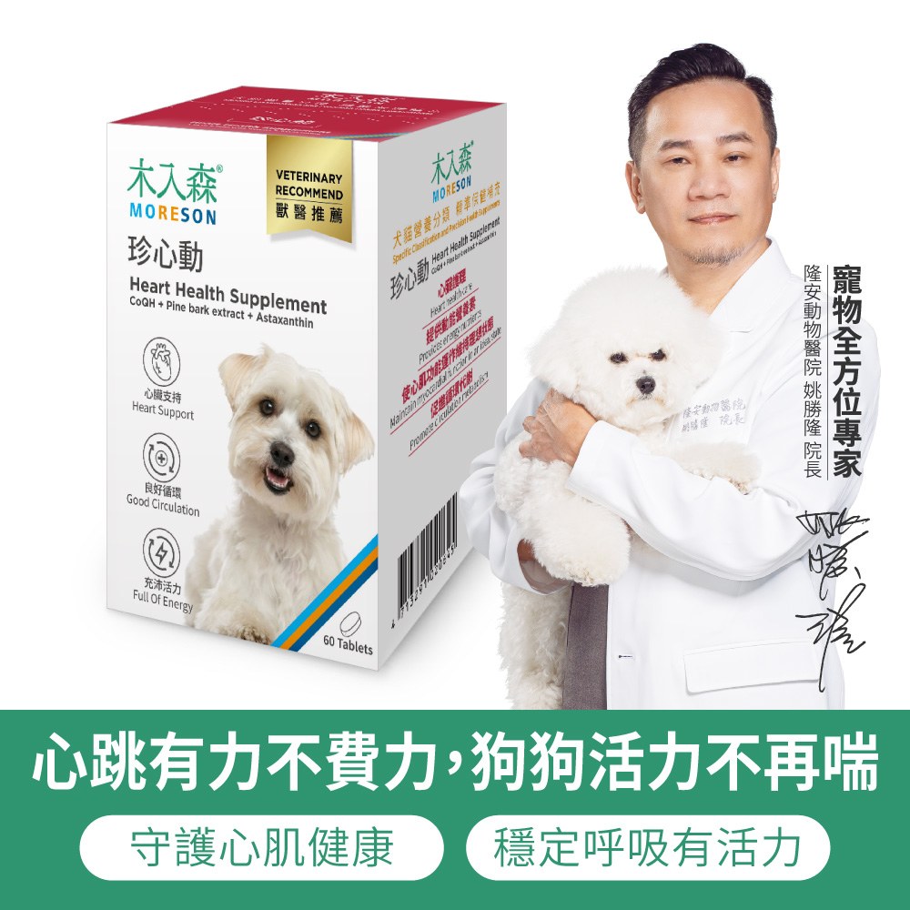 木入森《犬寶珍心動》,全方位狗狗心臟保健營養 6 大配方,維持健康心臟營養,使心肌功能運作維持理想狀態,激發心臟源動力,第一線守護心臟。