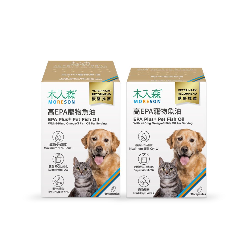 木入森高 EPA 寵物魚油,自主逐批檢驗Omega-3含量,確保Omega-3純度,最高可達95%,一粒就能補充足量的 Omega-3、EPA及DHA。每粒膠囊含有總共 400mg 的 EPA 及 DHA,濃度越高,每次補充的有效成分就越多,營養吸收更集中,效果更好!