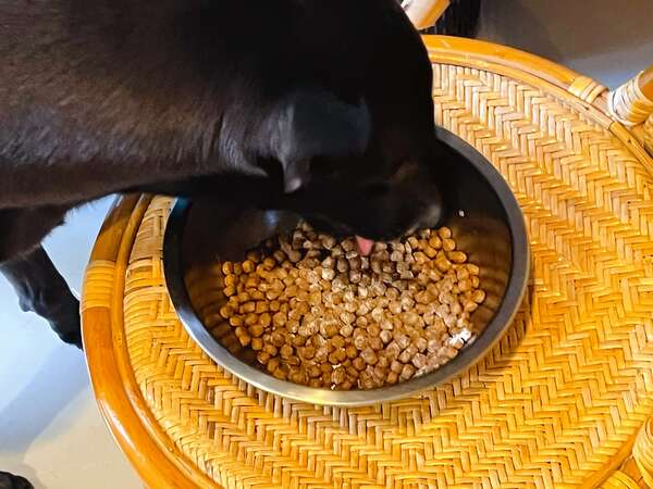 木入森 MORESON 犬變不臭2.0升級版 嗜口性不錯喲!剩下黏在碗上的益生菌還要舔得精光~不過因為沾到了口水,就卡在碗上。不知道各位家長有什麼小撇步可以解決益生菌卡在碗上的問題呢?Garry 自己是選擇顆粒比較小的乾乾,這樣就能增加益生菌附著在乾乾上的面積,但還是會沾到一點點在碗底,每次都需要泡水才可以洗掉 XD