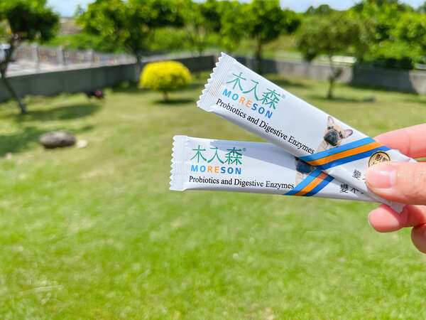 木入森 MORESON獨立包裝,方便保存及添加。台灣氣候潮濕,大瓶罐裝的益生菌除了容易受潮,用量也不好拿捏。這種獨立包裝就是一份2g,還能隨身攜帶,就算是帶狗狗出去旅遊,也能輕鬆的定時、定量餵食。