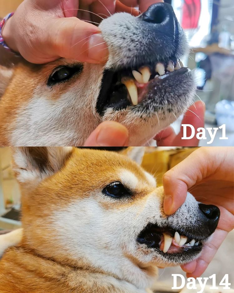 圖5.對比圖上圖是使用前的狗狗牙齒照