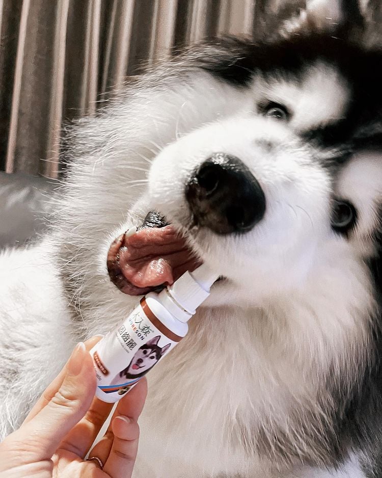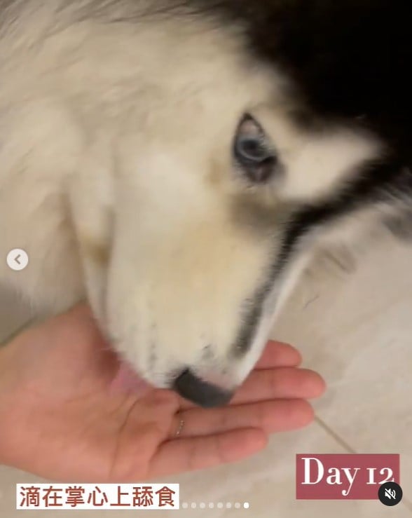 ?滴在手掌心上 直接給狗狗舔食