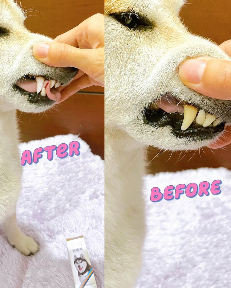 這幾天使用過後覺得胖虎不排斥刷牙;而且除了用牙刷外,也可直接滴在手上或是滴入水裡讓寵物在喝水同時也能做口腔保健?